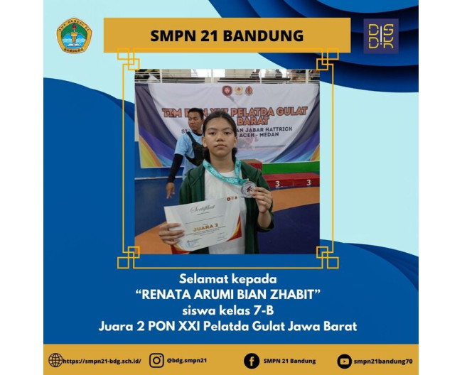 "Renata Arumi Bian Zhabit" Siswa kelas 7-B (Juara 2 PON XXI PELATDA Gulat Jawa Barat 2024)